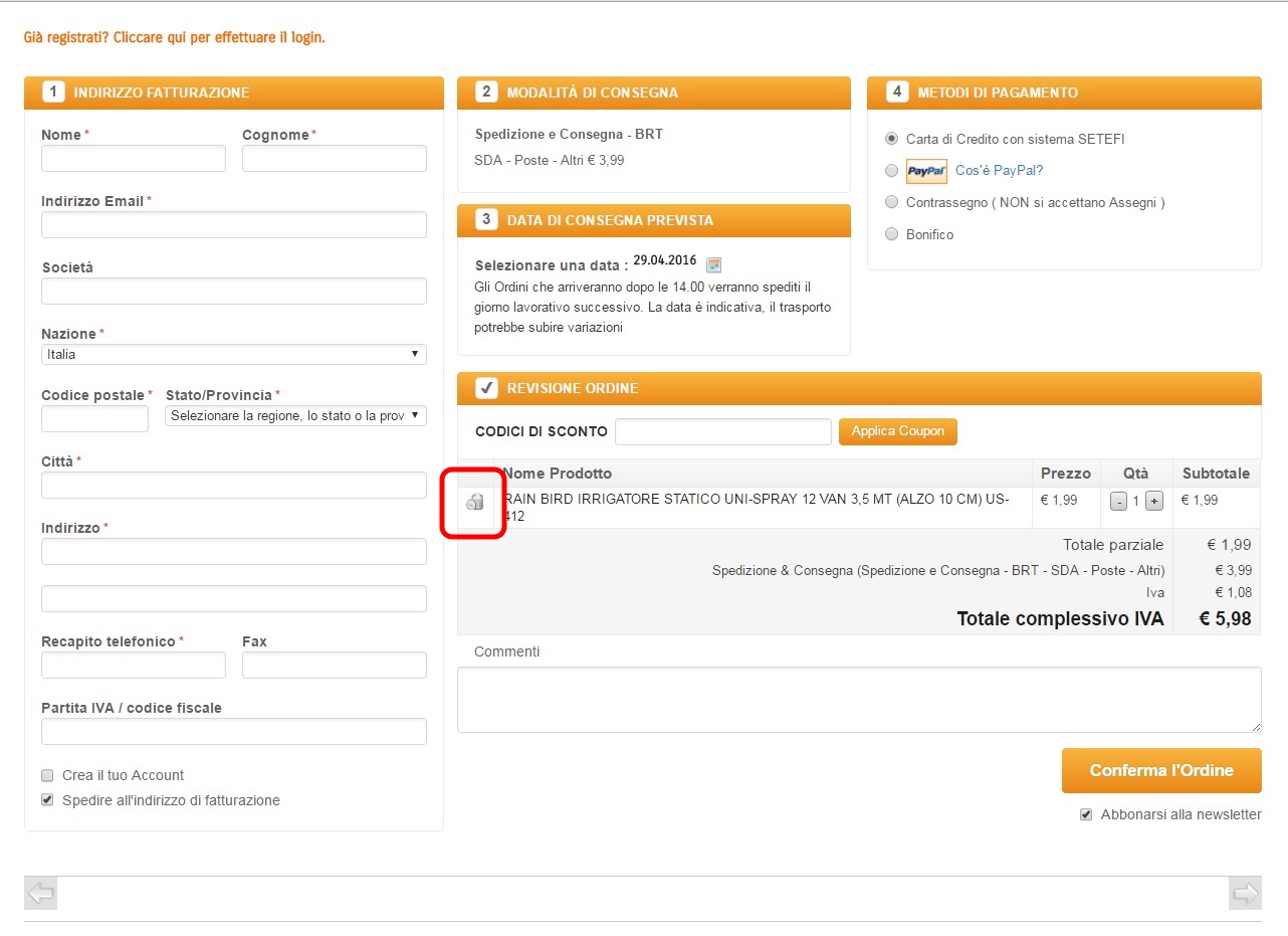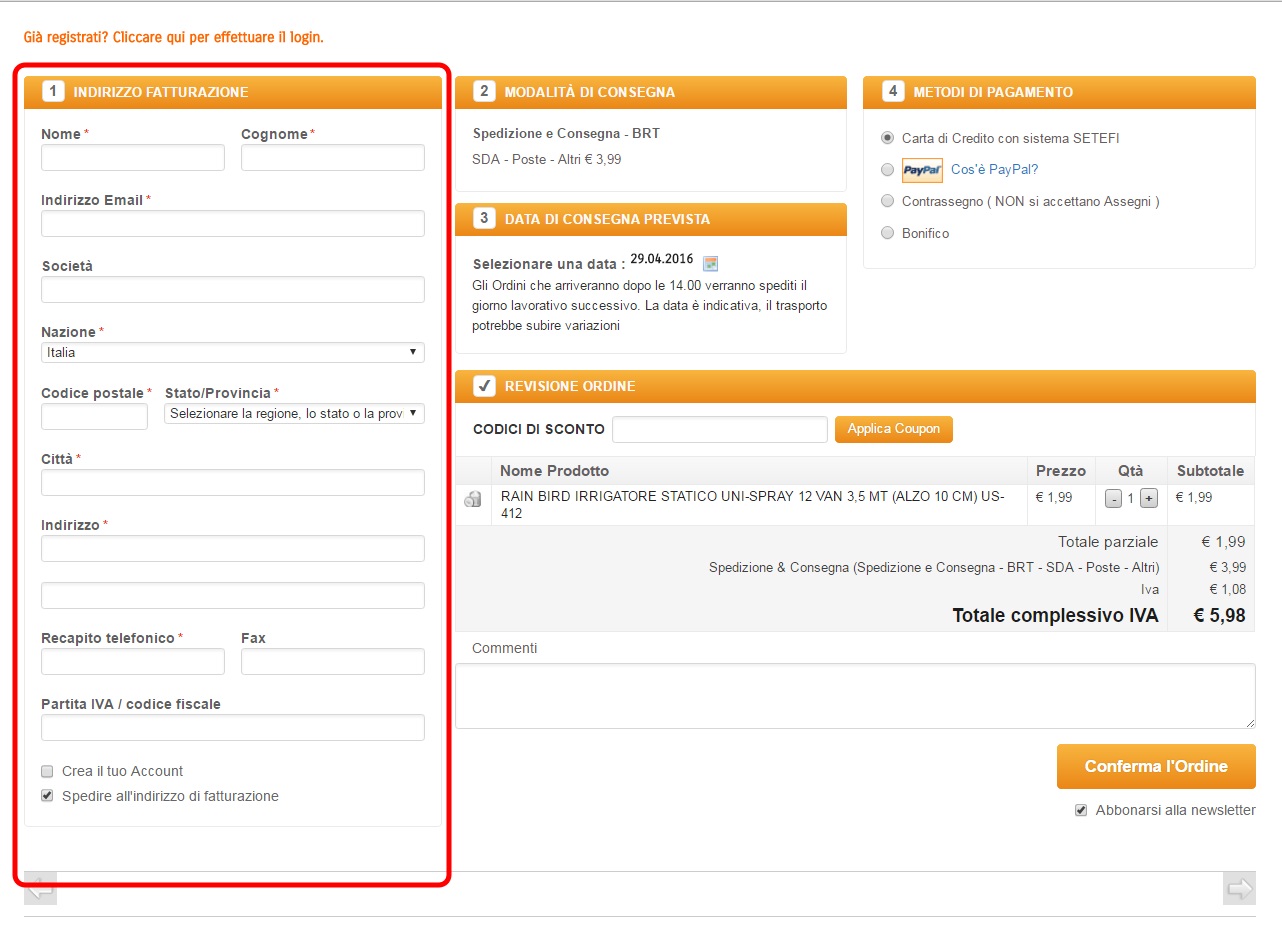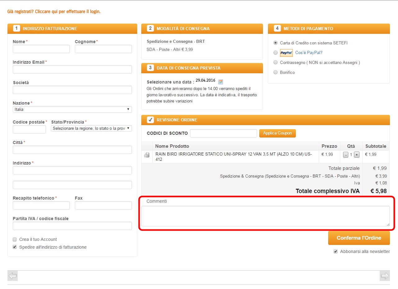 - Lasciare recapito telefonico è necessario, per risolvere rapidamente eventuali problemi negli ordini, nelle spedizioni ed in caso di mancata consegna.