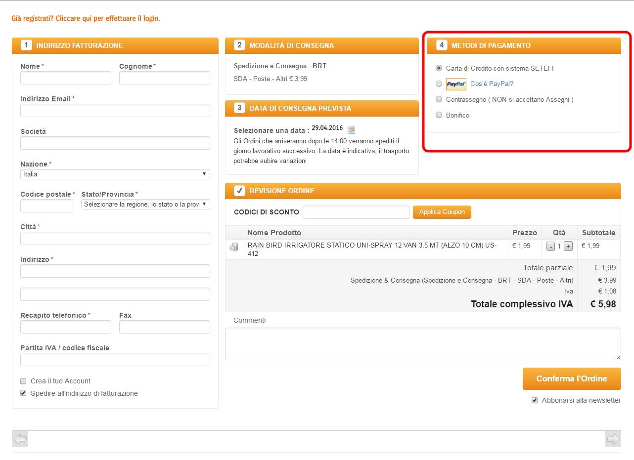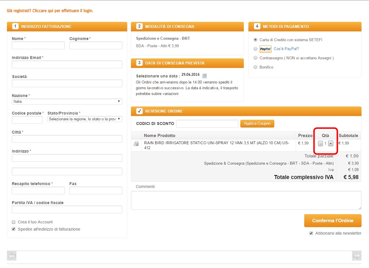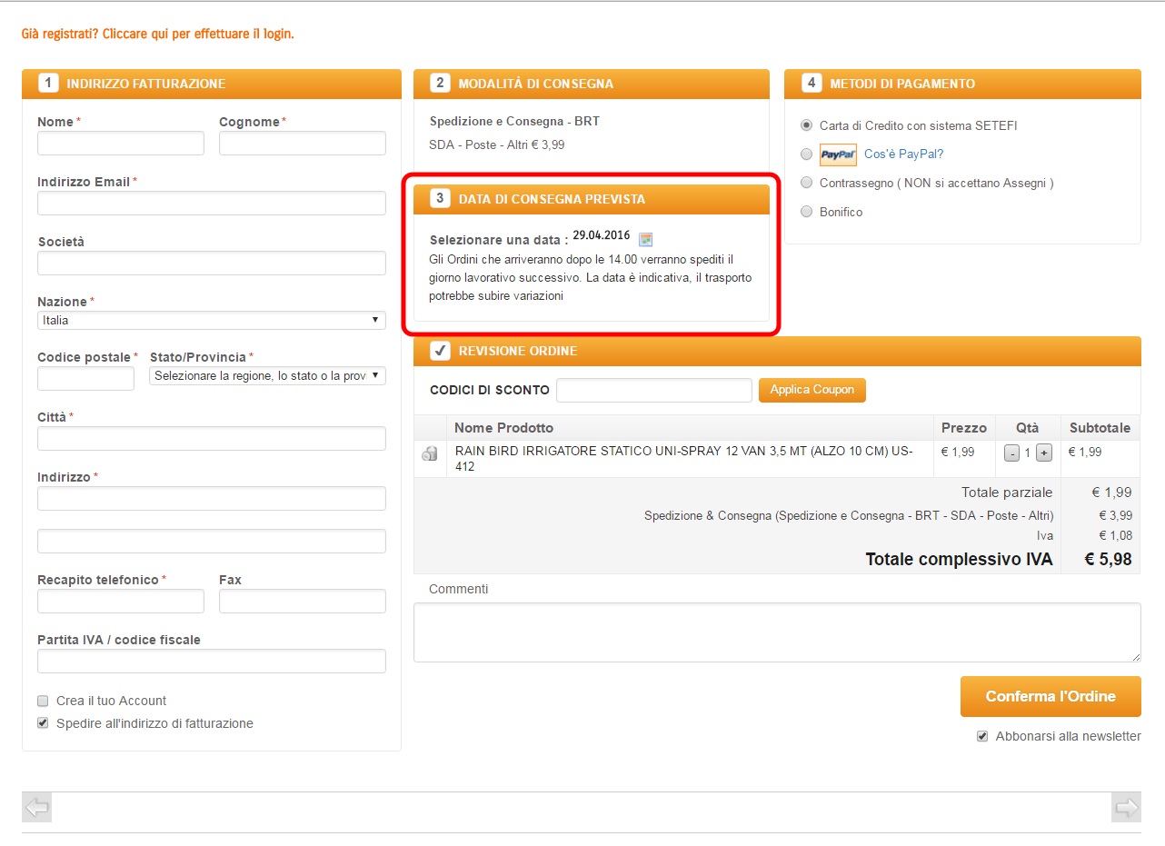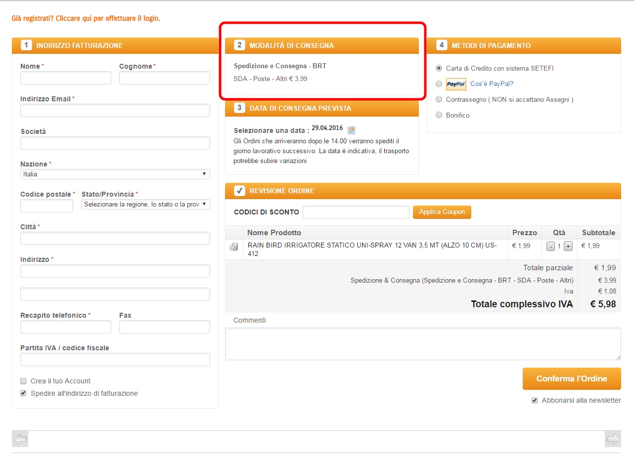 - Lasciare recapito telefonico è necessario, per risolvere rapidamente eventuali problemi negli ordini, nelle spedizioni ed in caso di mancata consegna.