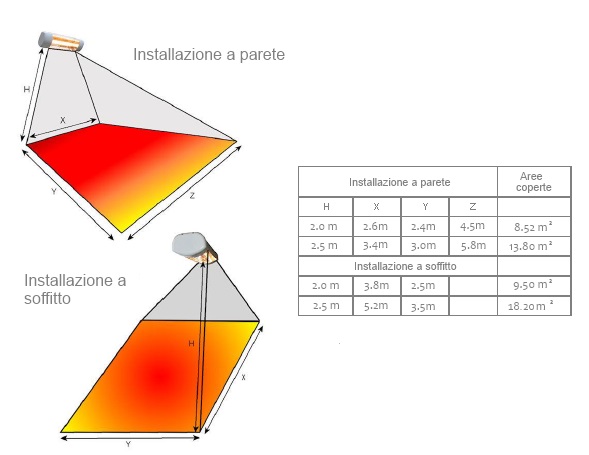 Installazione su Staffa :  2,0 m (h) per circa 9,5 mq